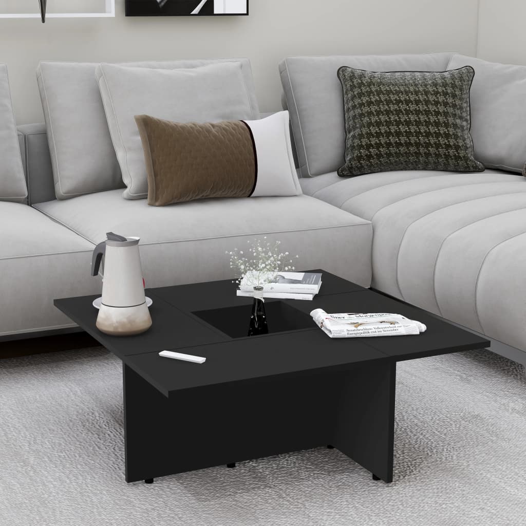 Tämä moderni sohvapöytä on muotoilultaan ainutlaatuinen ja se sopii mihin tahansa sisustukseen. Sivupöytämme on valmistettu lastulevystä, joten se on vakaa ja kestävä. Pöydän keskellä on ura, joka tarjoaa visuaalisen keskipisteen. Se on myös helppo puhdistaa kostealla liinalla. Sohvapöytä on helppo koota. Väri: musta Materiaali: lastulevy Mitat: 79,5 x 79,5 x 30 cm (P x L x K) Geometrinen muotoilu Asennus vaaditaan: kyllä