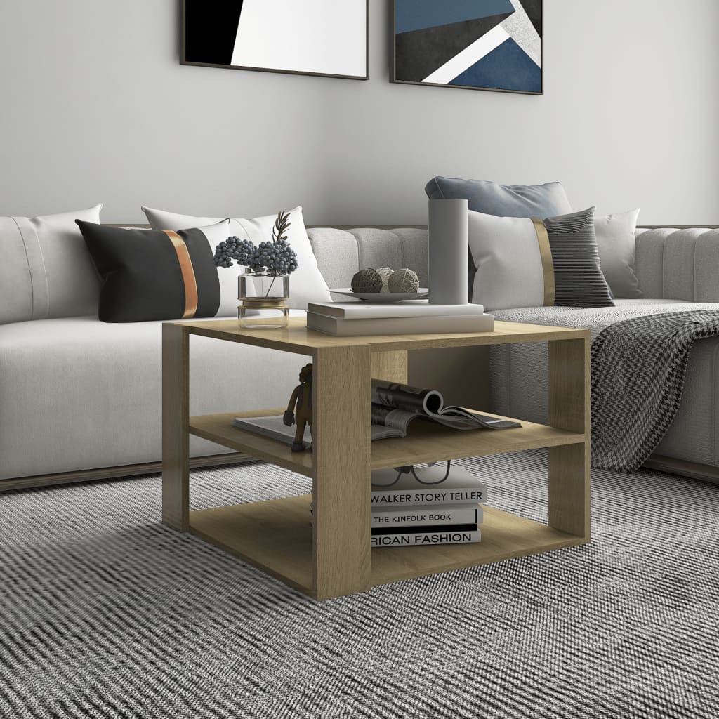 Lisää modernia tunnelmaa sisustukseesi tällä käytännöllisellä sohvapöydällä. Pöytälevy tarjoaa turvallisen paikan naposteltaville, juomille, maljakoille, hedelmävadeille ja muille esineille. Sohvapöydän alahyllyn ansiosta kotisi pysyy siistimpänä. Hyllylle voi asettaa kirjoja, aikakauslehtiä, tai pikkuesineitä, jotka haluat pitää ulottuvillasi. Pöytä on helppo puhdistaa kostealla liinalla. Väri: Sonoma-tammi Materiaali: lastulevy Mitat: 60 x 60 x 40 cm (L x S x K) Asennus vaaditaan: kyllä