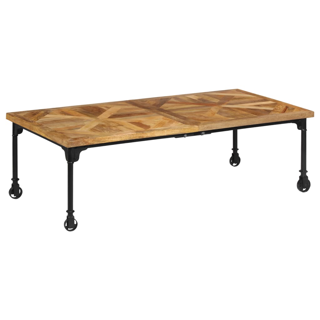 Täydestä mangopuusta valmistettu teollistyylinen sohvapöytä on ajaton lisä kotiisi. Sohvapöydän pöytälevy on täyttä mangopuuta, ja se on vakaa, kestävä ja kaunis. Penkin jalat on valmistettu valuraudasta, mikä tekee sohvapöydästä vakaan ja antaa sille teollista tyyliä. Taidokas käsityö ja kauniit puun pintakuviot tekevät jokaisesta huonekalusta ainutlaatuisen ja hieman erilaisen kuin muut. Valmistuksen jokainen vaihe on suoritettu erityisellä huolella, olipa kyseessä sitten kiillotus tai lakkaus. Tärkeä huomio: Värit vaihtelevat kappaleittain, jokainen työpöytä on siis ainutlaatuinen. Toimitus on satunnainen. Materiaali: täysi mangopuinen pöytälevy ja valurautajalat Mitat: 140 x 70 x 45 cm (P x L x K) Teollinen tyyli Hiottu ja lakattu Helppo puhdistaa kostealla liinalla
