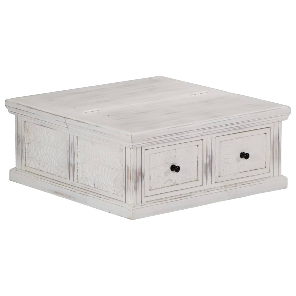 Tämä sohvapöytä huokuu houkuttelevaa viehätysvoimaa. Siitä tulee todellinen keskipiste sisustukseesi. Sohvapöytä on valmistettu täydestä mangopuusta, joka on tiheäsyinen kovapuu. Karkea mangopuu ei vain lisää kantavuutta, se kestää myös ajan patinan sekä kulutusta. Tämän seurauksena tämä kauniisti suunniteltu puinen sohvapöytä on todella vakaa, kestävä ja katseet vangitseva. Tämä sivupöytä on täysin käsintehty ja hienostuneet puun syyt tekevät jokaisesta huonekalusta ainutlaatuisen sekä toisistaan eroavan. Olohuoneen pöydässä on 2 vetolaatikkoa, joten se tarjoaa riittävästi tilaa säilyttämään kahvikupit, kirjat sekä muut tavarat. Tärkeä huomio: Puunsyyt vaihtelevat kappaleittain tehden jokaisesta yksilöstä ainutlaatuisen. Toimitus on sattumanvarainen. Väri: valkoinen Materiaali: täysi mangopuu Mitat: 70 x 70 x 30 cm (P x L x K) Viimeistely: hiottu, maalattu ja lakattu 2 vetolaatikkoa