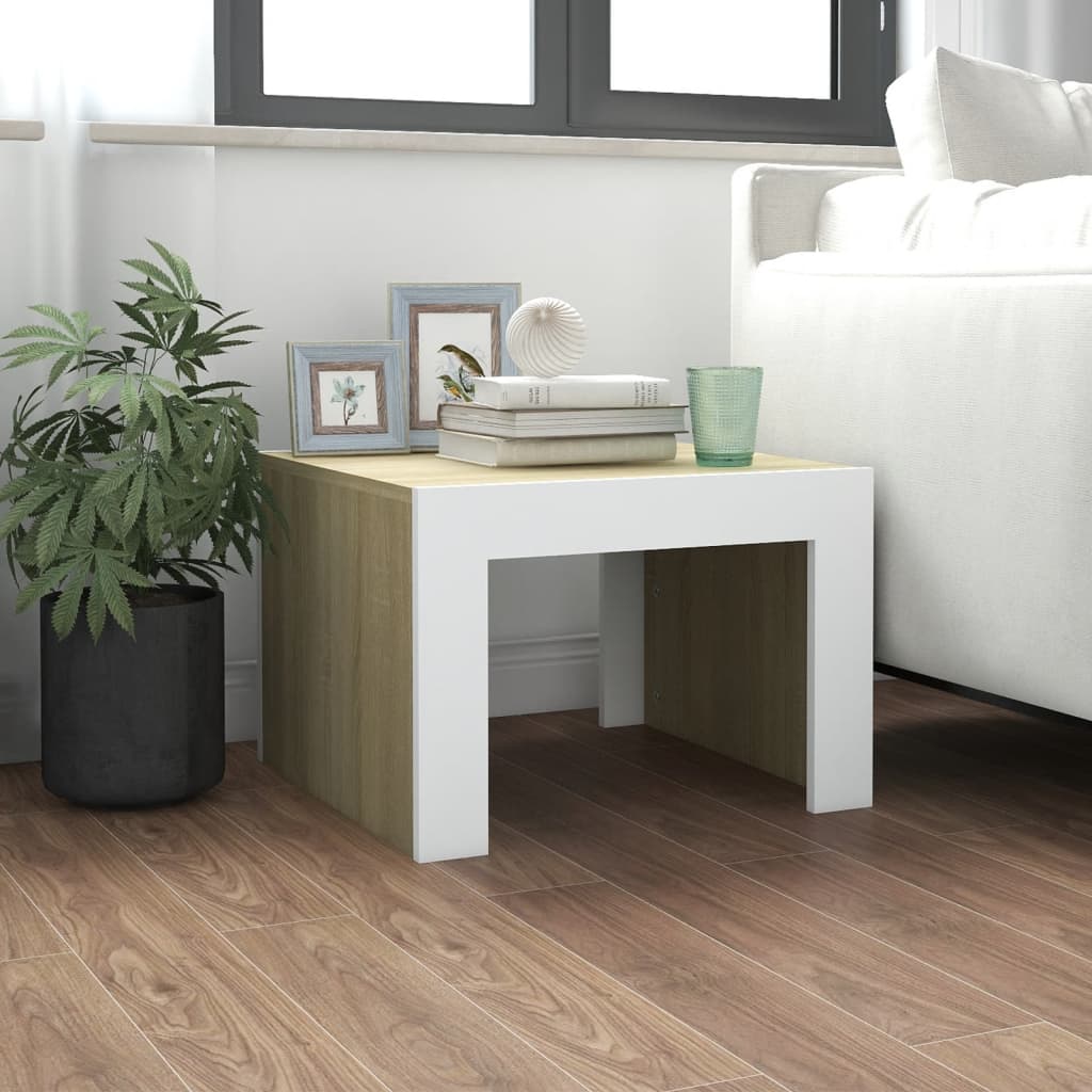 vidaXL Sohvapöytä valkoinen ja Sonoma-tammi 50x50x35 cm lastulevy