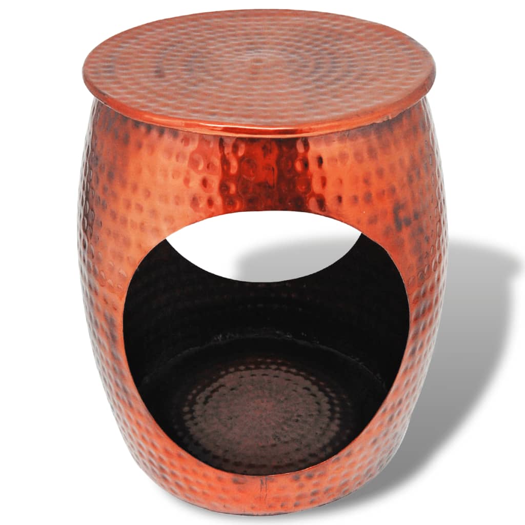 Tämä siisti ja sulavalinjainen tynnyrinmuotoinen jakkara, on upea lisä olohuoneeseen, eteiseen, makuuhuoneeseen, jne. Sitä voidaan käyttää myös sivupöytänä, kukka-/lamppu-/puhelinpöytänä, jne. Sivupöytä on valmistettu laadukkaasta kuparista, joten se on todella tukeva ja kestävä, ja se tarjoaa upean paikan koriste-esineille, valokuville, tai jopa ruukkukasveille. Keskellä oleva säilytyslokero tarjoaa ylimääräistä säilytystilaa pikkutavaroille. Lisäksi, pöytä on erittäin helppo puhdistaa. Väri: ruskea Materiaali: kupari Mitat: 35 x 41 cm (Halk. x K) Tynnyrinmuotoinen Säilytyslokerolla