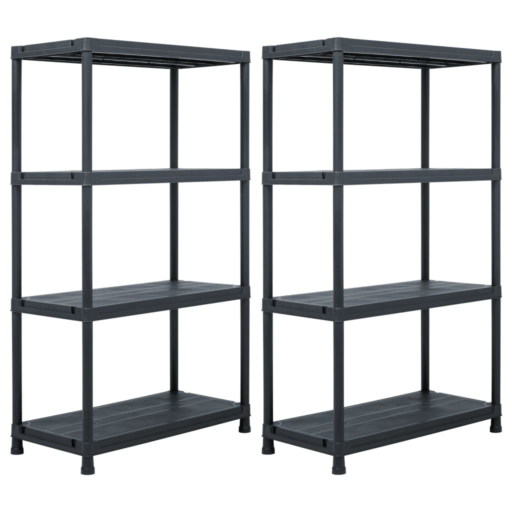 Varastohyllyä voidaan käyttää olohuoneen kirjahyllynä, koriste-esineiden esillepanoon, patiolla kasvien säilyttämiseen jne. Hylly on tehty tukevasta ja kestävästä muovista. Se on helppo puhdistaa kostealla liinalla ja sopii hyvin kosteaan tilaan kuten keittiöön, kylpyhuoneeseen, varastoon ja kellariin. Kompaktin muotoilunsa ansiosta hyllykkö on tilaa säästävä säilytysratkaisu. Varastohylly on helppo asentaa mukana tulevien tarvikkeiden avulla. Toimituksessa mukana 2 varastohyllyä. Väri: musta Materiaali: muovi Mitat: 80 x 40 x 138 cm (P x L x K) 4 tasoa Maksimikantavuus hyllyä kohden: 50 kg Maksimikantavuus: 200 kg Asennusmateriaalit sisältyvät toimitukseen TÜV-GS-sertifioitu VAROITUS! Kaatumisen estämiseksi tätä tuotetta on käytettävä mukana toimitetun seinäkiinnityslaitteen kanssa. Toimitukseen sisältyy 2 säilytystelinettä