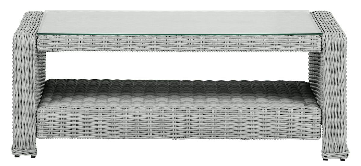 Tukeva Vila Vinga sohvapöytä, jonka viimeistelee kannen päällä oleva lasi. Sohvapöytä tuo mukavasti pientä laskutilaa sohvan ja tuolien äärelle. Pöydän päällä on karkaistu lasi, jonka paksuus on 0,5 cm. Pöydän runko on alumiinia ja punos helppohoitoista, UV-suojattua polyrottinkia.