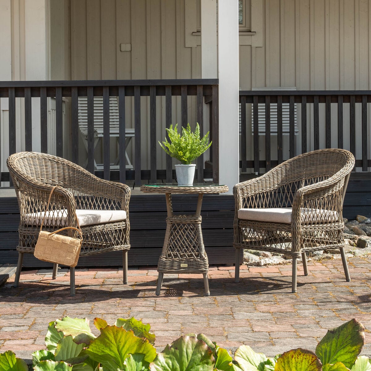 Vilja parvekesetti on täydellinen valinta jokaiseen ulkotilaan, tarjoten mukavuutta ja kestävyyttä kauniissa muodossa. Settiin kuuluu kaksi tuolia ja yksi pöytä, joissa kaikissa on kevyt mutta vahva alumiinirunko sekä tyylikäs polyrottinkipunos, joka kestää erilaisia sääolosuhteita hyvin. Beigen väriset irrotettavat istuinpehmusteet lisäävät istumismukavuutta, ja niiden pestävät päälliset tekee niiden puhtaanapidosta vaivatonta. Setin moderni muotoilu yhdistettynä luonnonvärisiin pintojen sävyihin luo tyylikkään ilmeen, joka sopii niin moderniin kuin perinteisempäänkin ympäristöön. Kompakti koko tekee setistä ihanteellisen myös pienemmille parvekkeille tai terasseille, tarjoten täydellisen paikan nauttia aamukahvista tai illan viilentymisestä. Valitse Vilja parvekesetti, kun haluat yhdistää toiminnallisuuden ja…