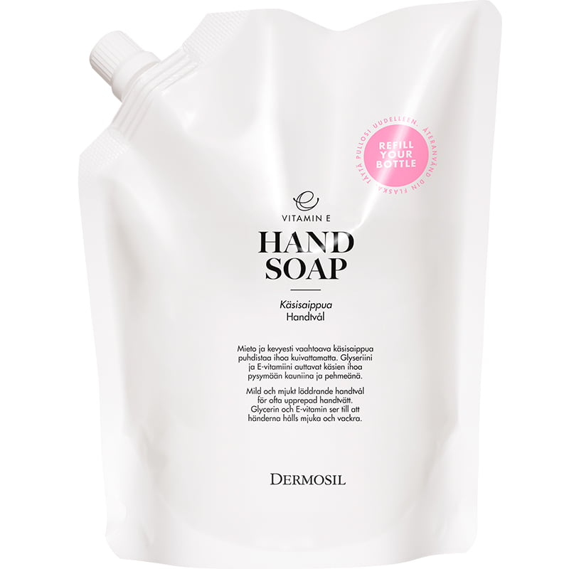 Raikkaan roosanpunainen käsisaippua usein toistuvaan käsien pesuun. Sisältää ihoa kosteuttavaa E-vitamiinia ja glyseriiniä. Saippuassa pehmeän raikas Vitamin E -sarjan Hypoparfum®-tuoksu. Riittoisa.