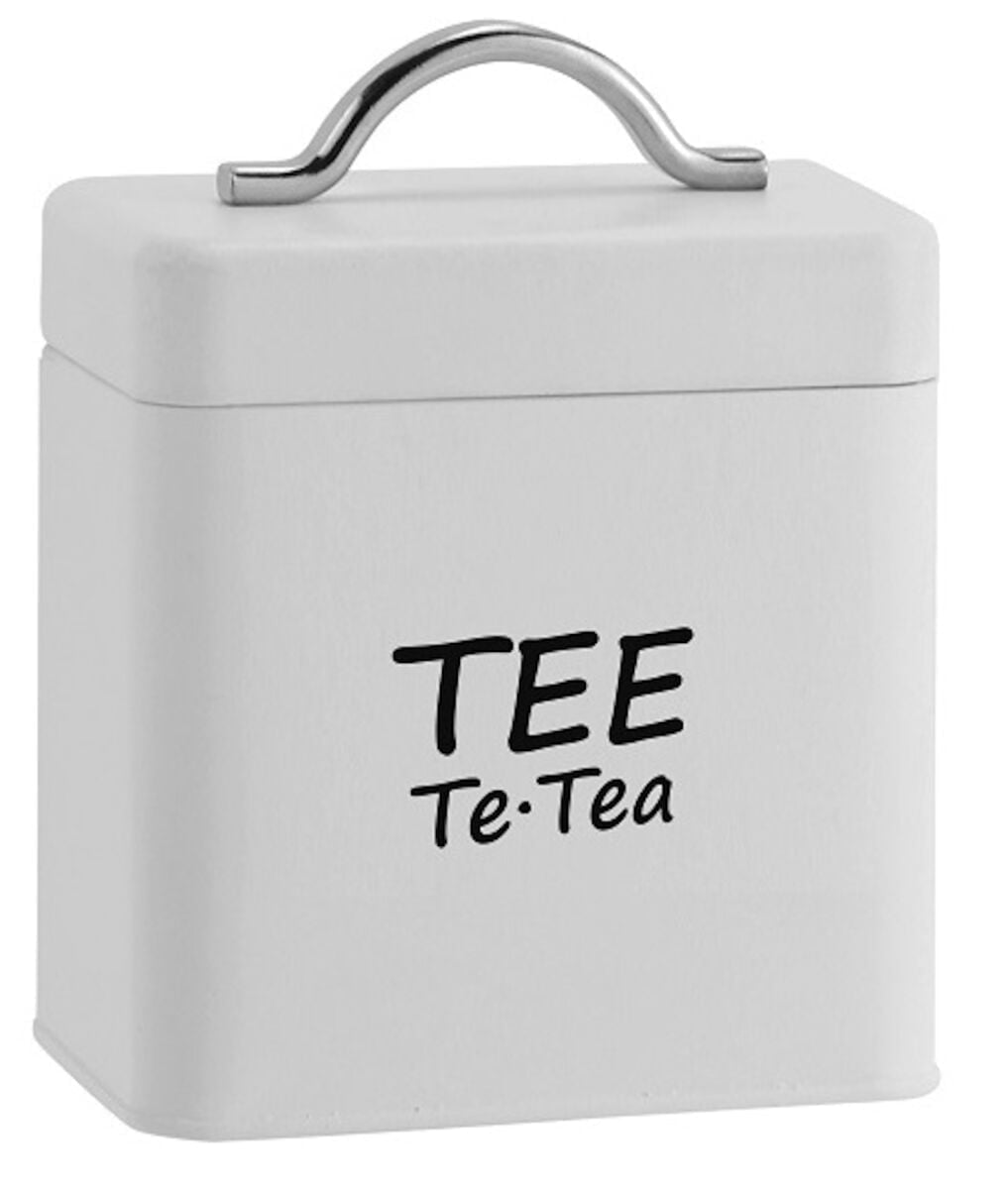 Ajattoman kaunis metallipurkki, johon voit säilöä teepussit. Purkin yhdellä sivulla teksti: Tee. Sopii mainiosti keittiösi sisustamiseen tai lahjaksi.