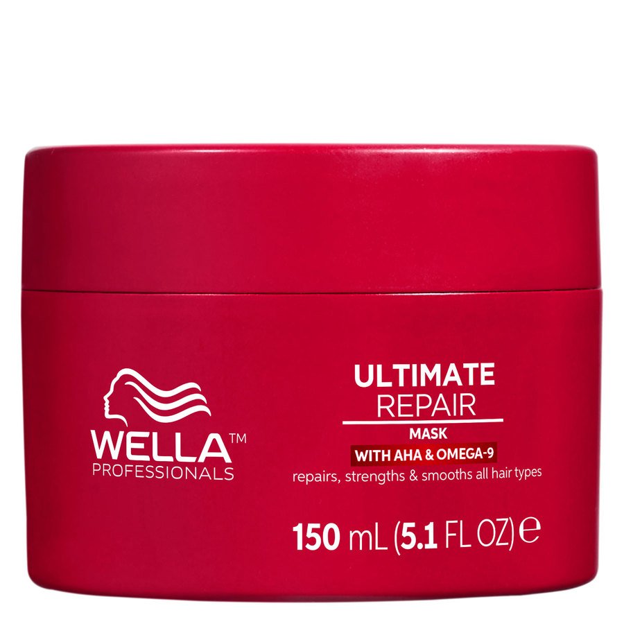 Wella Professionalsin Ultimate Repair Mask on rauhoittava ja korjaava hiusnaamio, jonka alfahydroksihappoa (AHA) ja omega-9-rasvahappoa sisältävä koostumus korjaa ja vahvistaa huomattavasti vahingoittuneita hiuksia. Kevyt hiusnaamio korjaa lämpömuotoilusta, UV-säteilystä, vaalennuksesta, hiuspannoista ja hiustenpidennyksistä vaurioituneita hiuksia.