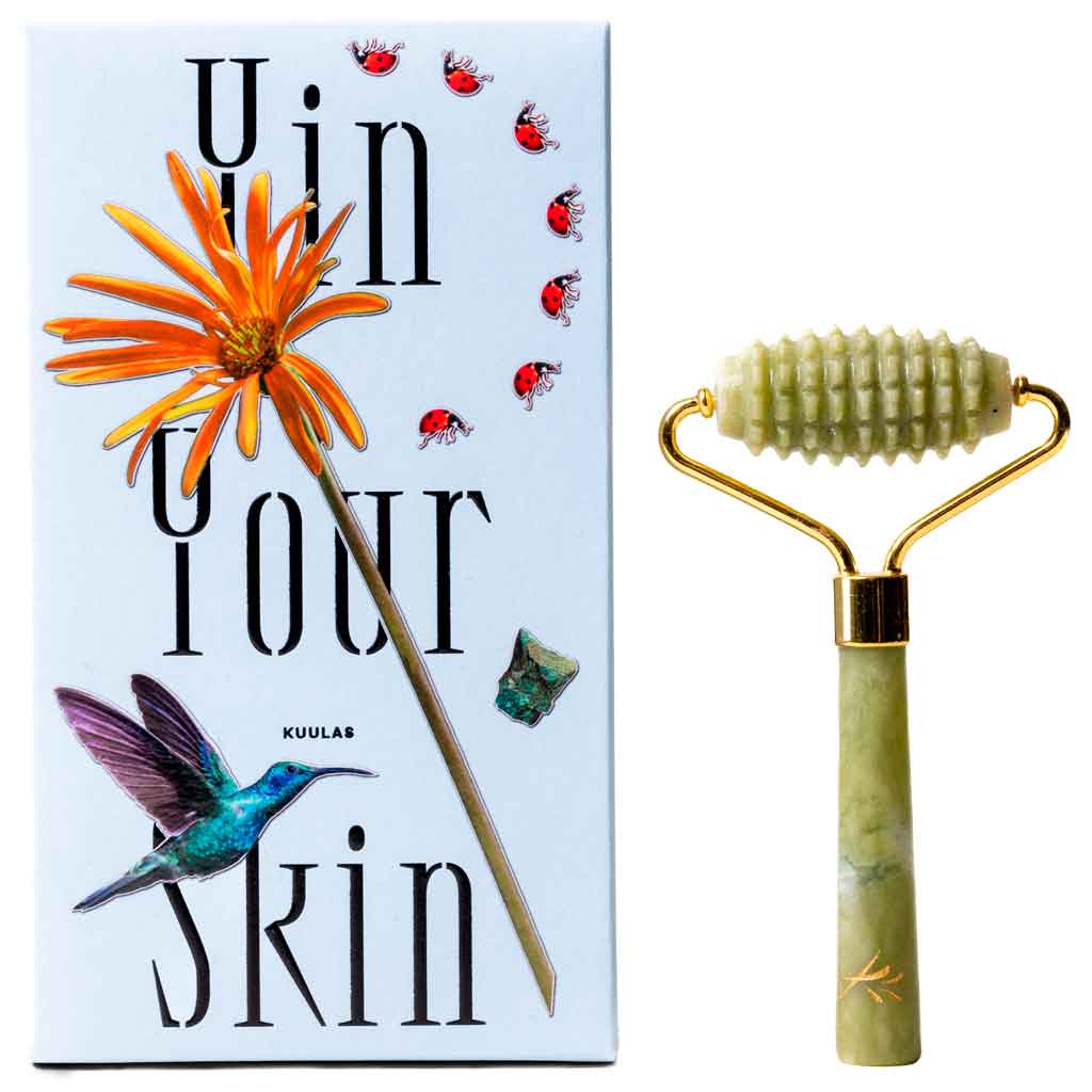 Jadekivestä valmistettu rulla saa ihosi sädehtimään .KUULAS-jaderulla on loistava kasvojen pikakaunistaja. Jo muutaman minuutin hoito jaderullalla herättää upean hehkun kasvoille, kaulalle ja dekolteelle. Rullaus on helppo ja tehokas tapa vilkastuttaa ihon verenkiertoa ja kollageenin muodostusta. Rullauksen jälkeen iho tuntuu ja näyttää välittömästi napakalta, kirkkaalta ja kuulaalta. Rullaus auttaa ihonhoitotuotteitasi imeytymään optimaalisesti, jolloin saat niistä myös kaiken ravinnon ja elinvoiman ihosi käyttöön.KUULAS iho on viesti sisäisestä hehkusta ja hyvinvoinnista. Kiinalaisessa lääketieteessä tätä selittämätöntä hehkua kutsutaan nimellä Shen. Kun pidämme siitä huolta ja teemme asioita, jotka saavat meitä hehkumaan, säteilemme tasapainoa, onnellisuutta ja aitoa kauneutta.*KUULAS Jaderulla on osa Katja Kokon luomaa Yin Your Skin® -tuoteperhettä. Välineet on valmistettu 100 % Xiuyan-jadesta Kiinassa, ikiaikaista Gua Sha -perinnettä kunnioittaen. Jokainen väline on uniikki. Niin ovat sinun kasvosikin.Välineet on valmistettu luonnonkivestä, jonka vuoksi jokainen väline on uniikki ja niiden värit saattavat vaihdella. . Käyttö Voit rullata kasvot nyppylärullalla ennen ihonhoitotuotteiden levittämistä puhdistetulle iholle, ihonhoitotuotteiden levittämisen jälkeen tai tehdä rullauksen tavallisen gua sha hoitosi päätteeksi. . Rullausta ei tule tehdä tulehtuneelle ja herkälle iholle, couperosalle, rosacealle eikä iholle, jolla esiintyy epäpuhtauksia. . Puhdista rulla käytön jälkeen saippualla ja vedellä ja kuivaa se huolellisesti. Jos käytät välinettä toisten hoitamiseen, se tulee myös desinfioida. Jos rulla alkaa nitistä, annostele kiinnityskohtiin tippa mitä tahansa öljyä. .