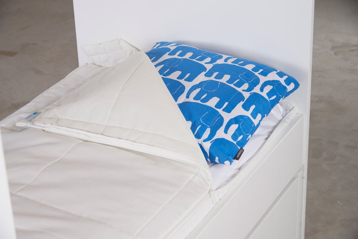 Zipit-peitolla ratkaiset petaus- ja tyylihuolet yhdellä kertaa! Sängyn petaaminen käy käden käänteessä laadukkaiden vetoketjujen avulla. Illalla pedin avaaminen on yhtä helppoa. Vetoketju vain auki ja kansi rullalle jalkopäähän. Zipit toimii erinomaisesti lasten sängyssä, koska tämä peitto on helppo pedata ja pysyy napakasti paikallaan, vaikka sängyllä leikkisi tai ötköttelisi päivän aikana. Patja ja petivaatteet jäävät peiton sisään pussiin, joka suljetaan kannella. Halutessasi voit irrottaa kannen kokonaan pesua tai tuuletusta varten. Zipit-päiväpeitossa toinen pääty (tyynypää) on auki. Tämä tekee petaamisesta helpompaa, jättää pienen tuuletusraon tyynypäähän ja antaa tilaa tyynylle. Materiaalina puuvilla-polyestersekoitus, eri värivaihtoehtoja.Mitat:70 cm x 165 cm x 11 cm70…
